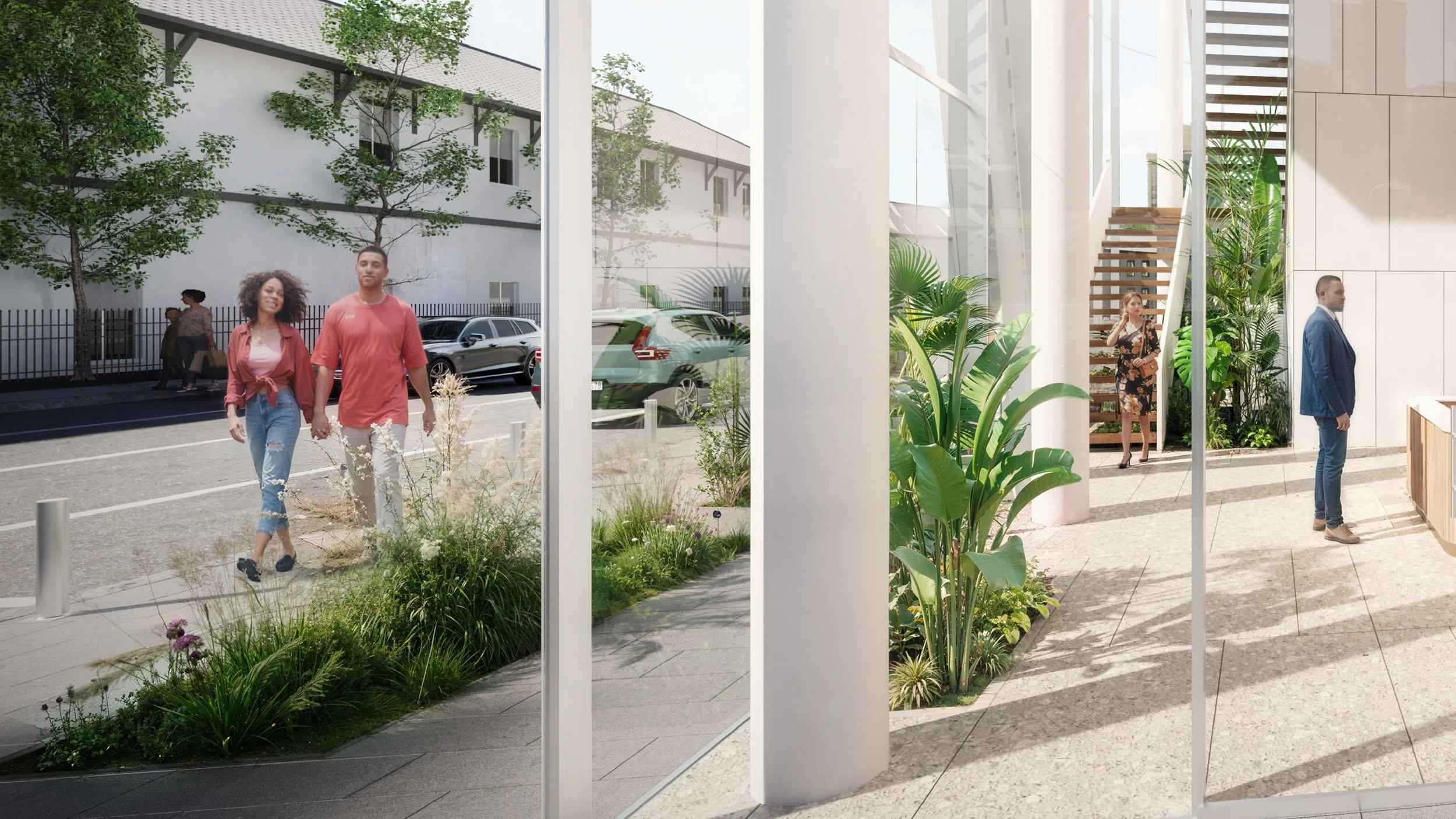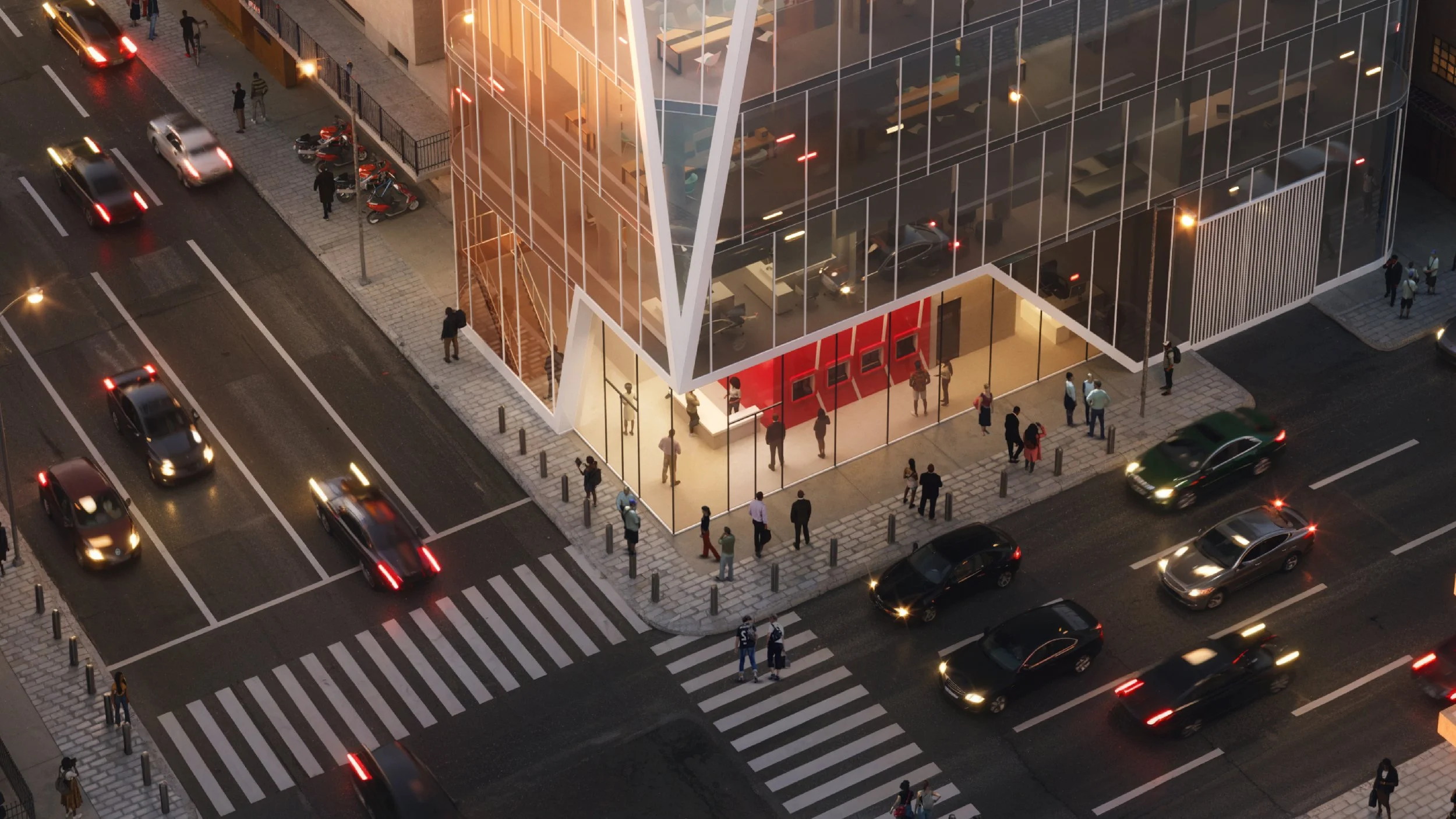 Strategically positioned to maximize the corner exposure of the site, the design frees the prime corner for a grand, welcoming main entry, while discreetly placing the parking access along Light-foot Boston Street. This approach ensures a seamless visitor experience from arrival to entrance, setting the stage for a memorable and inspiring visit. The building’s layout and form are carefully crafted to engage the public and reinforce the bank’s commitment to accessibility and transparency.