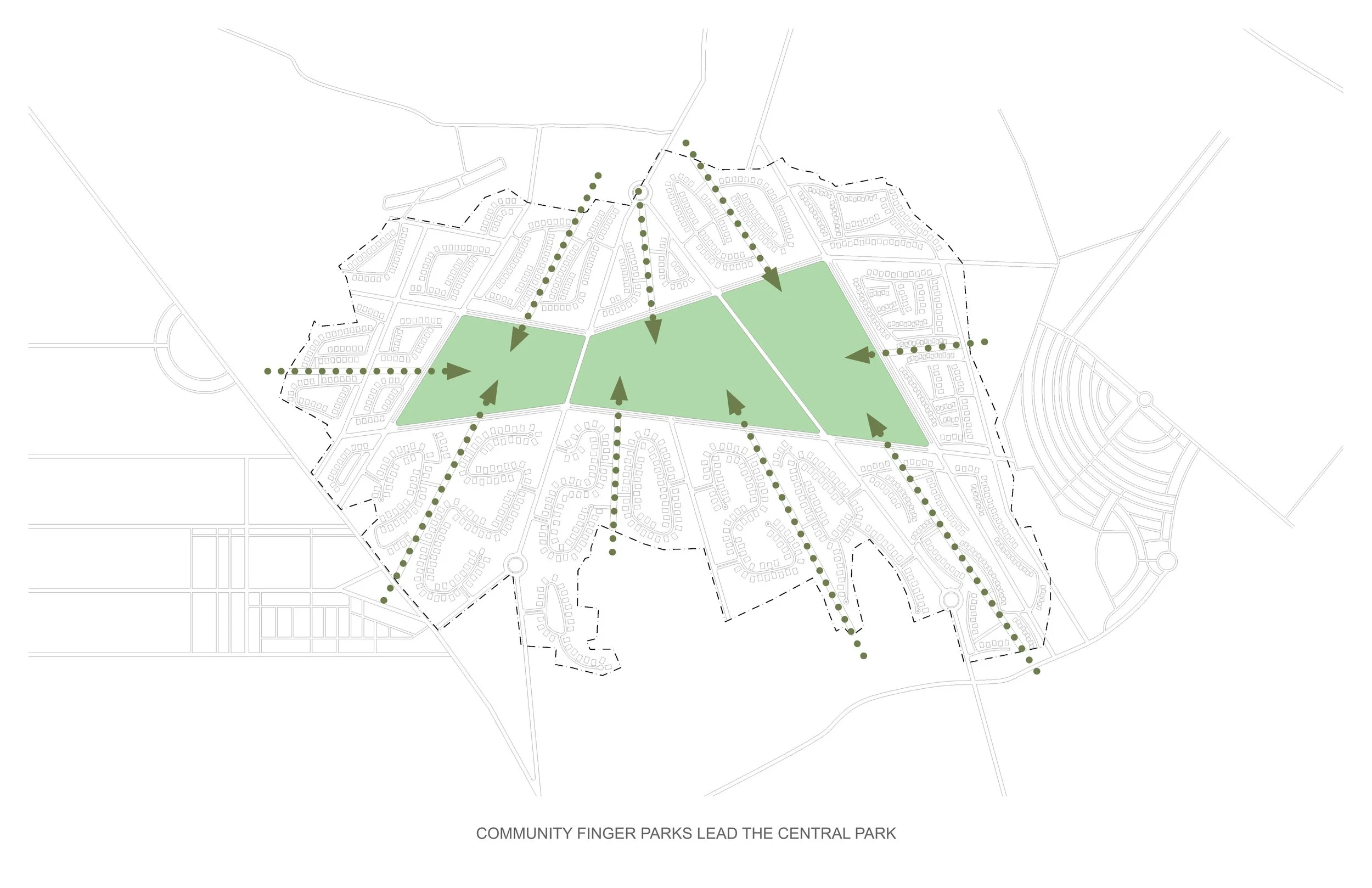 The heart of the master plan is the Green Heart, a grand central park that functions as both the ecological and social spine of the community. Sculpted gardens, shaded walking trails, children’s play zones, performance lawns, and open-air art landscapes create a dynamic environment that enriches everyday life.